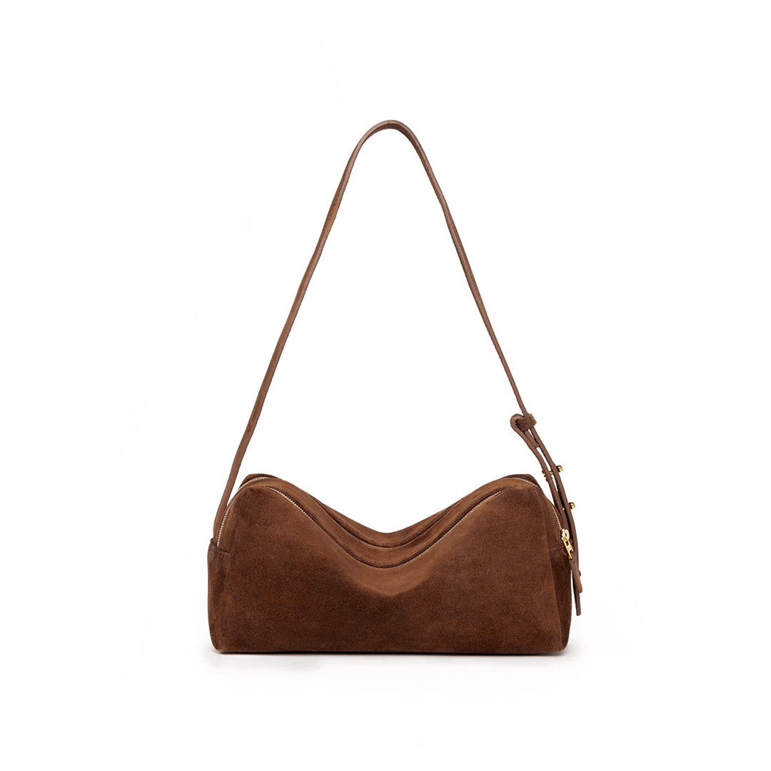 Discover the understated elegance of the Becky bag , featuring two distinct silhouettes crafted from luxurious suede. Choose between the sleek, curved hobo bag with a minimalist strap for a refined shoulder look, or the functional, boxy camera bag with a double-zipper closure for organized, on-the-go convenience. Both styles offer a versatile and sophisticated addition to any wardrobe.