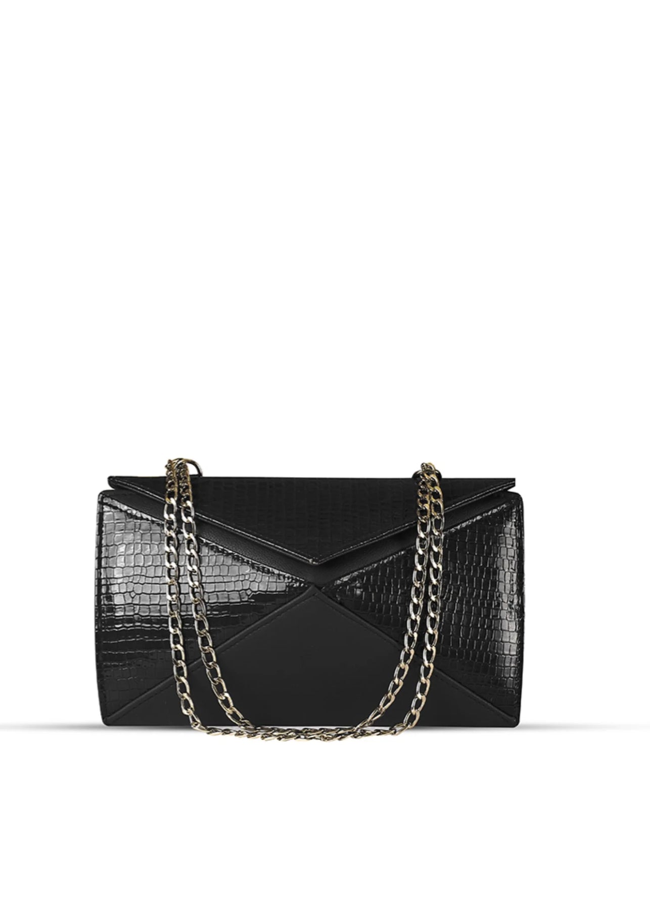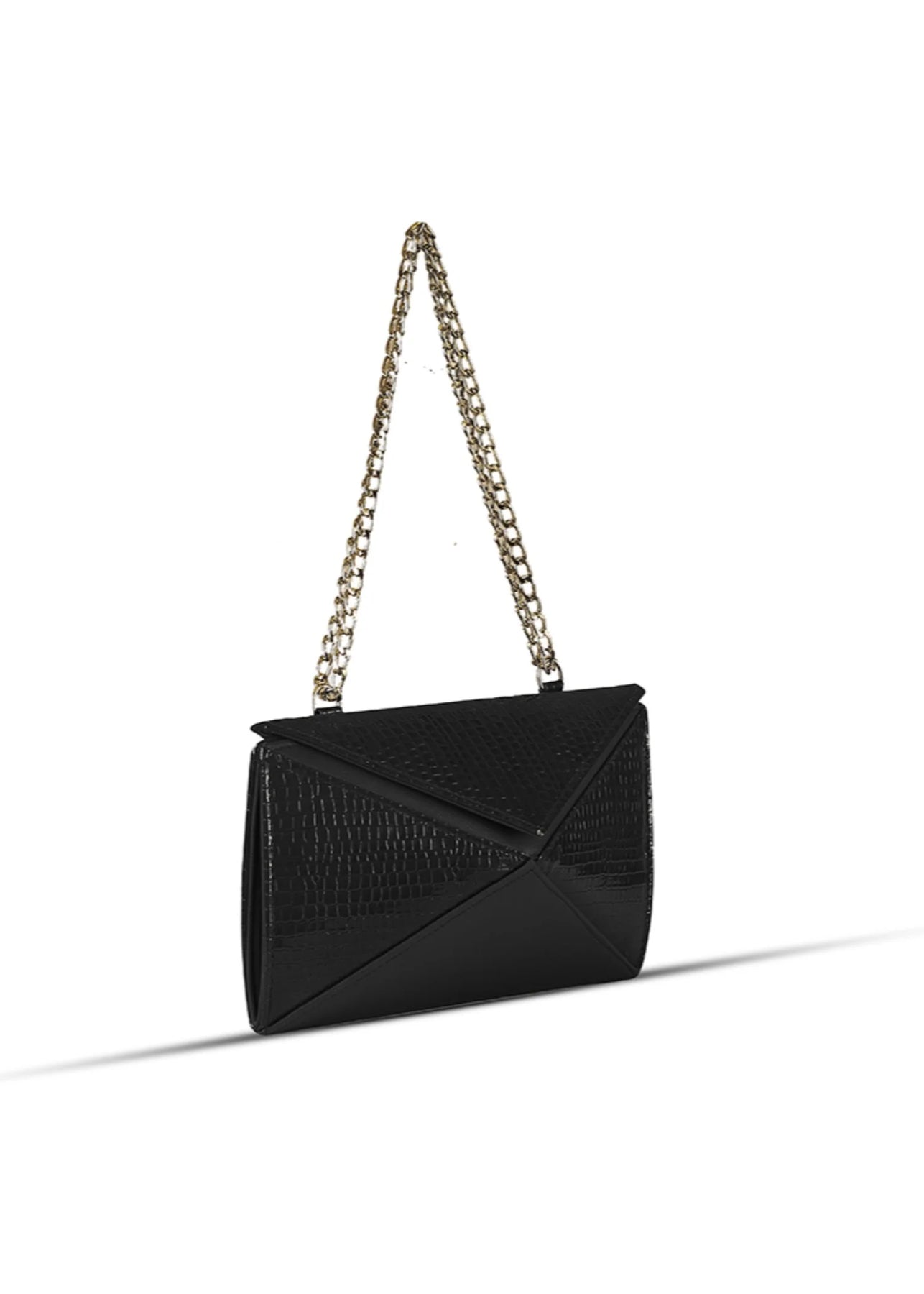Combining a high-gloss crocodile texture with a sharp, geometric silhouette, this bag is designed to be the focal point of any ensemble.