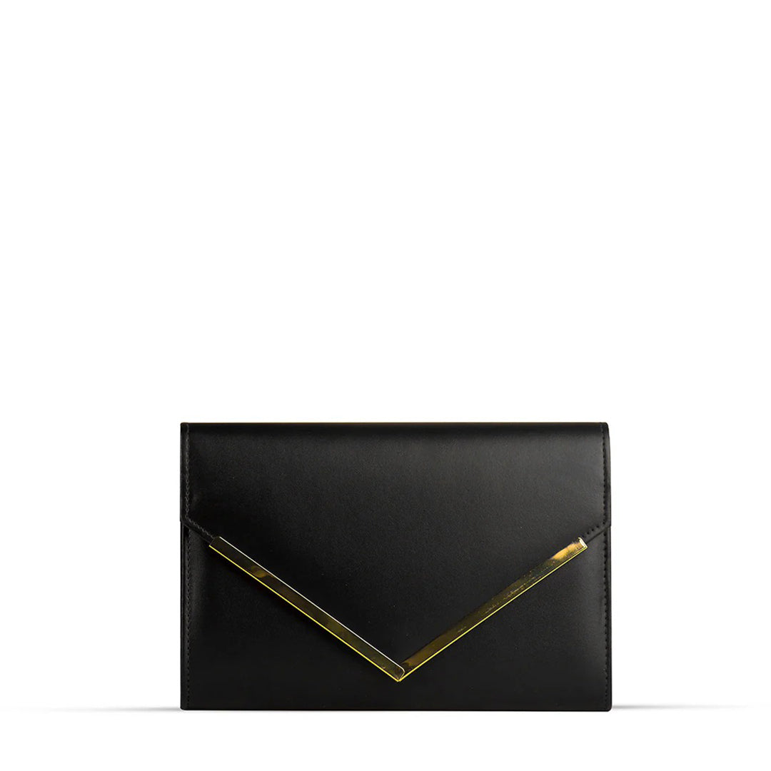 A sleek embodiment of modern sophistication, the WEST clutch redefines minimal luxury. Crafted in deep black with a bold metallic V-detail, it’s the perfect balance of classic refinement and contemporary edge. Designed to complement both day-to-night transitions.