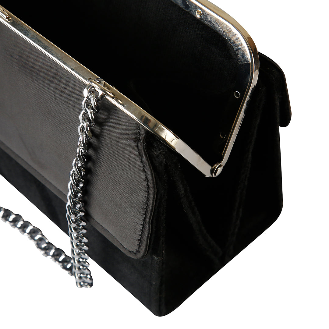 Define your evening look with this timeless black velvet shoulder bag. Combining vintage-inspired aesthetics with a modern edge, this bag features a plush velvet finish and a sophisticated kiss-lock clasp that adds an air of classic elegance to any outfit.